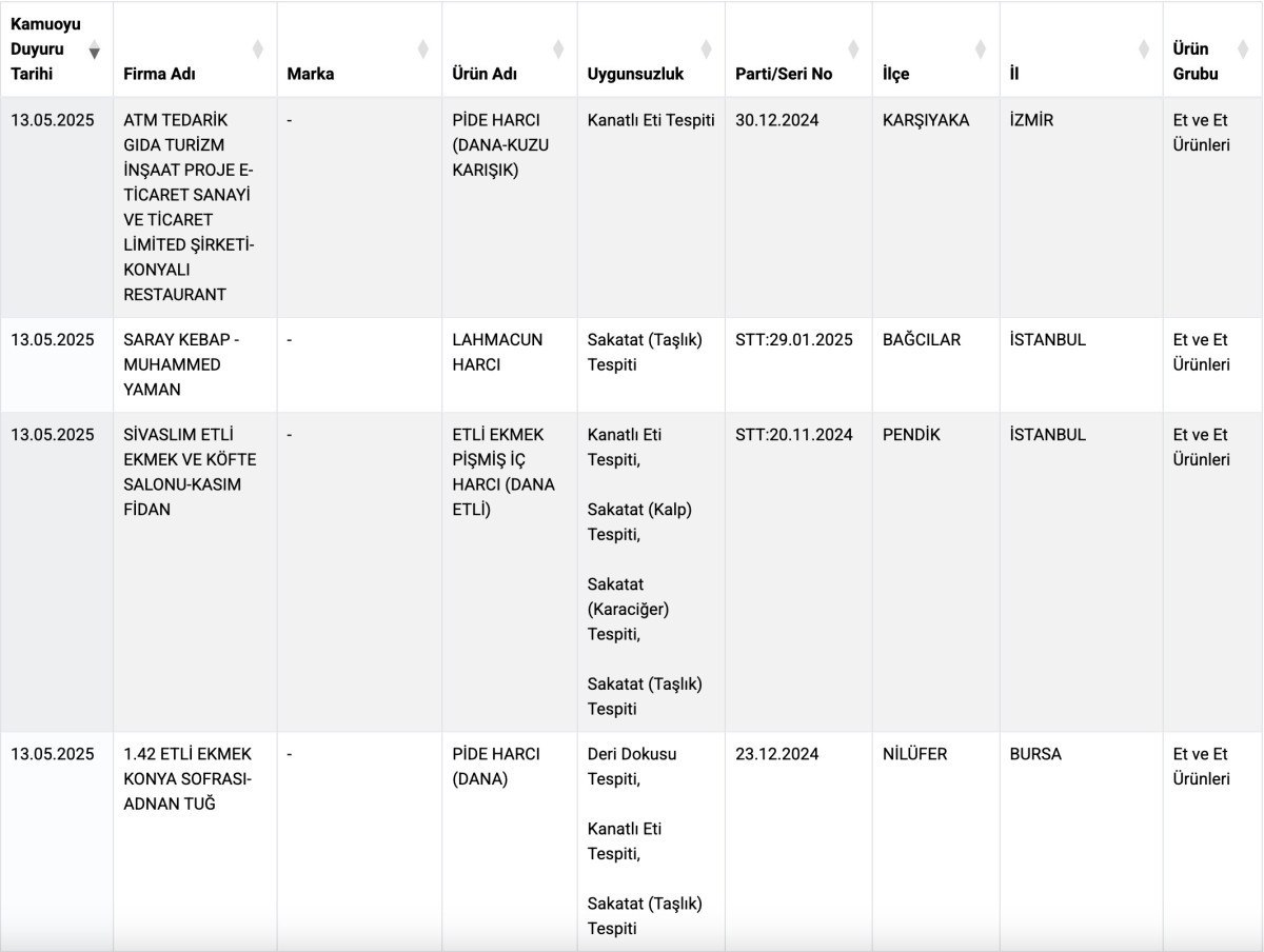 Ayrıca, sucuk ve köfte üzere et eserlerinde de usulsüzlükler göze çarptı.